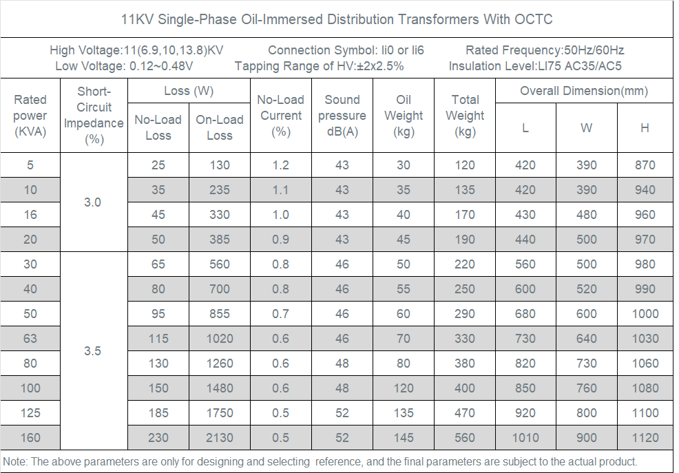 A single phase oil-immersed transformer is an electrical device used primarily in power distribution systems to step up or step down voltage levels in single-phase alternating current (AC) circuits. It is designed to efficiently transfer electrical energy from one circuit to another while isolating the primary and secondary circuits, ensuring safety and compatibility between different voltage levels. The single-phase transformer can reduce the length of the low-voltage distribution line, reduce line losses, improving the power supply quality, the high efficiency and energy saving roll core structure design, the characteristics of the transformer is used in a column on suspension installations, small volume, infrastructure investment is small, reduce the radius of low voltage power supply, can reduce the low voltage line loss more than 60%. Fully sealed structure is used in transformer overload capability, high reliability of continuous running, simple maintenance, long service life.
